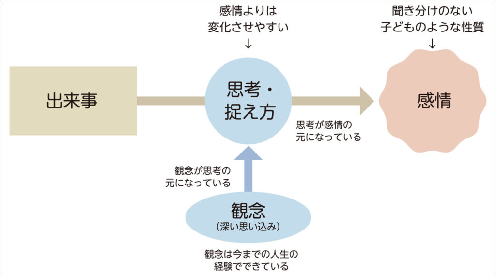 人の感情は、自分の外側で起こることを「どんなふうに考えるか」によって変わります。